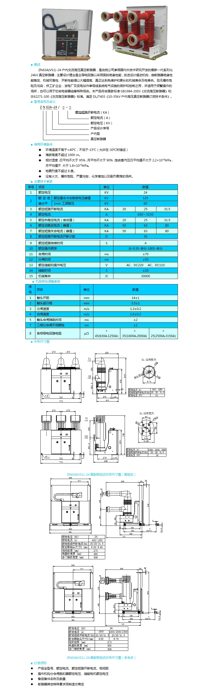 HGP(ZN63A-24)固封式戶內(nèi)高壓真空斷路器